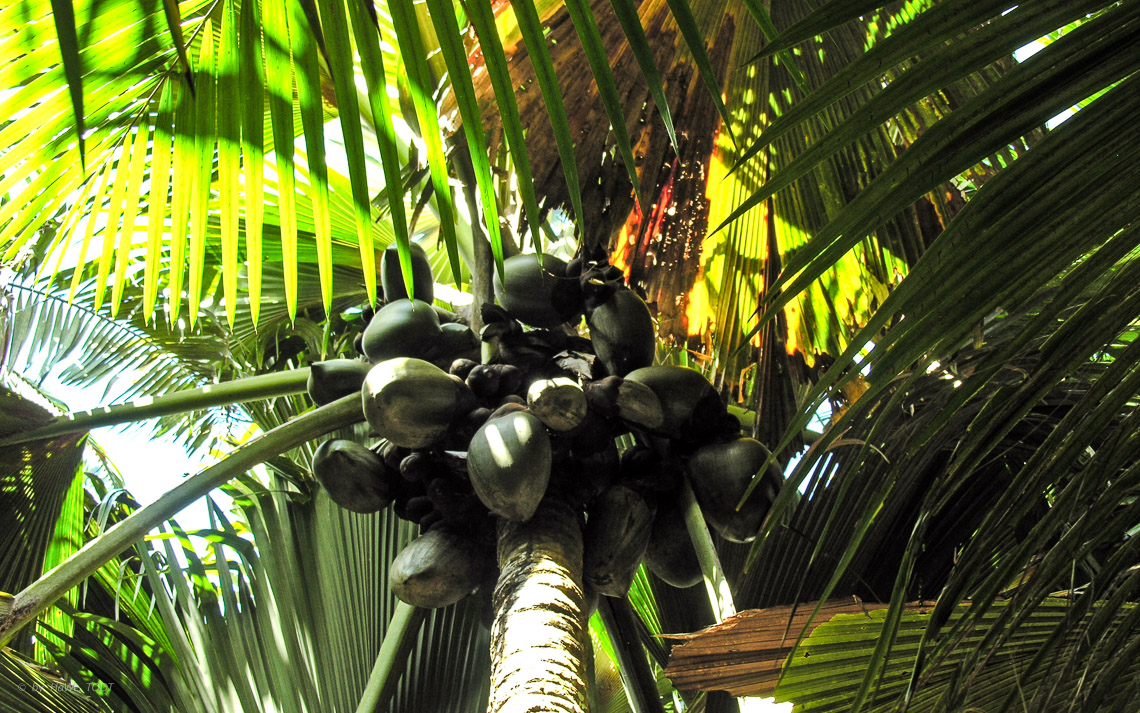 Coco de Mehr Palme, bis 35 m hoch, bis 400 Jahre alt